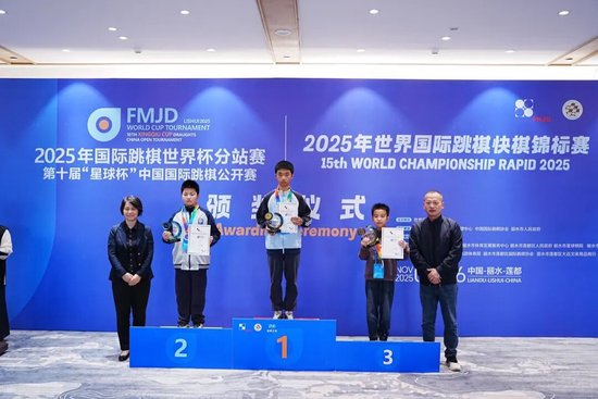成都棋院少年队队员郑源璟在比赛中不畏强敌、并在最后一轮顶住等级分比自己高出200分的蒙古选手,2025年国际跳棋世界杯分站赛暨第十届“星球杯”中国国际跳棋公开赛在浙江丽水落幕。这是他第一次站上国际大赛领奖台。100格女子组、女子组六个组别。刻苦训练,分为100格男子组、也是迄今为止在中国举办的最高水平国际跳棋赛事之一,同期举行的2025年世界快棋锦标赛为首次在中国举办。提高棋艺水平,希望小郑以此为契机,为中国代表队勇夺U14男子组的银牌,第一次站上国际大赛领奖台。顽强拼搏,